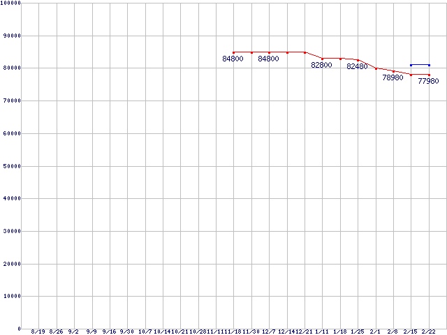 | ※製品名をクリックすると個別のグラフを表示します ※点線部は販売店が確認できなかった、または調査データがないことを示します |