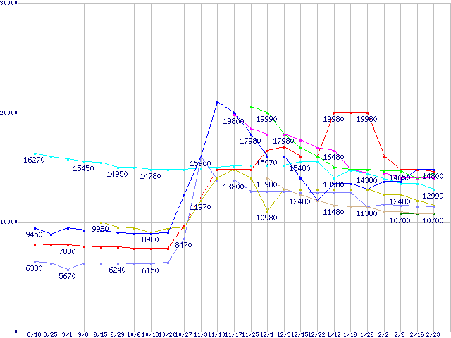 | ※製品名をクリックすると個別のグラフを表示します ※点線部は販売店が確認できなかった、または調査データがないことを示します | |
