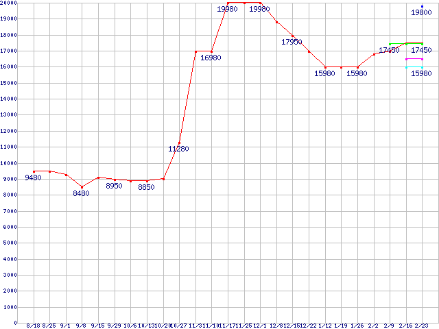 | HDD/SSD主要製品(最安値1万5千円〜2万円未満)の最安値推移 |