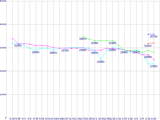 | ※製品名をクリックすると個別のグラフを表示します ※点線部は販売店が確認できなかった、または調査データがないことを示します | |