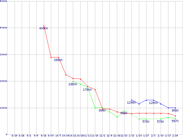 | ※製品名をクリックすると個別のグラフを表示します ※点線部は販売店が確認できなかった、または調査データがないことを示します | |