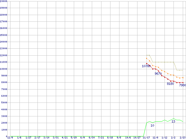 MZ-7PC064 (64GB,MLC)の価格推移↓次グラフ(2010年12月9日〜2012年2月23日)※このグラフは過去のデータも税率5%相当に調整した税込み相当額のグラフです。●関連グラフHDD/SSD主要製品の最安値推移HDD/SSD主要製品(最安値1万円未満)の最安値推移HDD/SSD 60GB〜80GB未満の最安値推移SSD 830 (SSD,6Gb/s,2.5インチ,リード520MB/s・ライト400〜160MB/s,7mm厚)の最安値推移●凡例最安値(点線部は販売店未確認または未調査)平均値最高値ショップ数