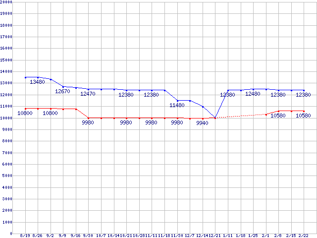 | Socket AM3 (HyperTransport 3.0,Quad Core)の最安値推移 |