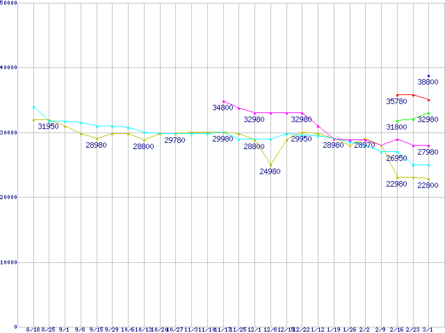 | ※製品名をクリックすると個別のグラフを表示します ※点線部は販売店が確認できなかった、または調査データがないことを示します | |