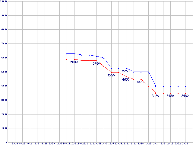 | ※製品名をクリックすると個別のグラフを表示します ※点線部は販売店が確認できなかった、または調査データがないことを示します |