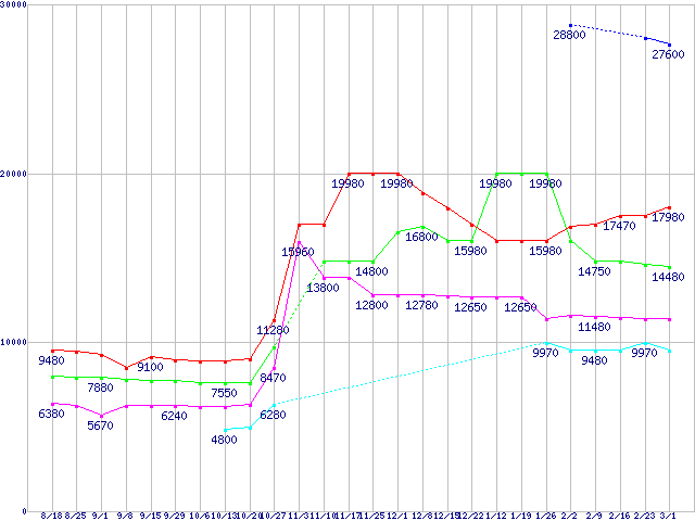 | ※製品名をクリックすると個別のグラフを表示します ※点線部は販売店が確認できなかった、または調査データがないことを示します | |