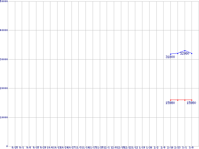 | ※製品名をクリックすると個別のグラフを表示します ※点線部は販売店が確認できなかった、または調査データがないことを示します |
