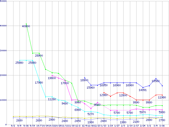| ※製品名をクリックすると個別のグラフを表示します ※点線部は販売店が確認できなかった、または調査データがないことを示します | |