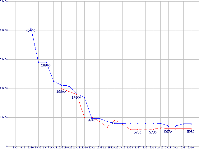 | ※製品名をクリックすると個別のグラフを表示します ※点線部は販売店が確認できなかった、または調査データがないことを示します |