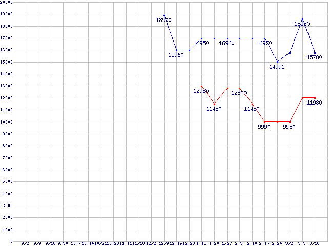 | ※製品名をクリックすると個別のグラフを表示します ※点線部は販売店が確認できなかった、または調査データがないことを示します |