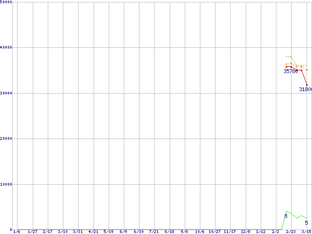 PX-256M2P (256GB,MLC)の価格推移↑前グラフ↓次グラフ(2011年1月6日〜2012年3月15日)※このグラフは過去のデータも税率5%相当に調整した税込み相当額のグラフです。●関連グラフHDD/SSD主要製品の最安値推移HDD/SSD主要製品(最安値2万円以上)の最安値推移HDD 250〜300GB未満の最安値推移M2P (SSD,6Gbps,2.5インチ,リード500MB/s・ライト440〜320MB/s)の最安値推移●凡例最安値(点線部は販売店未確認または未調査)平均値最高値ショップ数