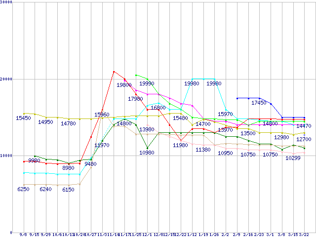 | ※製品名をクリックすると個別のグラフを表示します ※点線部は販売店が確認できなかった、または調査データがないことを示します | |
