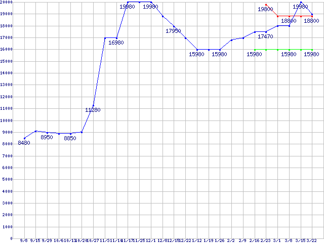 | HDD/SSD主要製品(最安値1万5千円〜2万円未満)の最安値推移 |