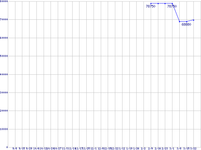 | HDD 400〜500GB未満の最安値推移 |