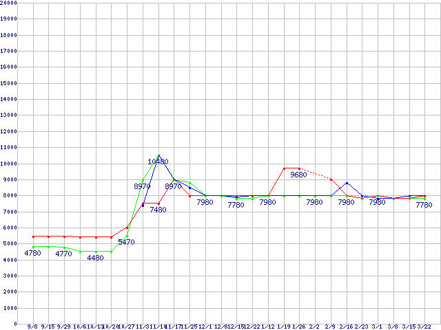 | ※製品名をクリックすると個別のグラフを表示します ※点線部は販売店が確認できなかった、または調査データがないことを示します | |