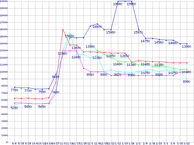 | ※製品名をクリックすると個別のグラフを表示します ※点線部は販売店が確認できなかった、または調査データがないことを示します | |