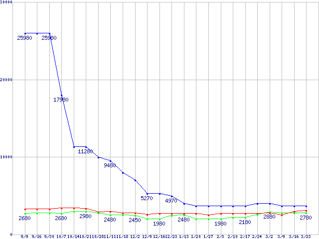 | ※製品名をクリックすると個別のグラフを表示します ※点線部は販売店が確認できなかった、または調査データがないことを示します | |
