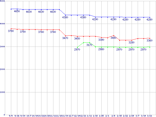 | ※製品名をクリックすると個別のグラフを表示します ※点線部は販売店が確認できなかった、または調査データがないことを示します | |