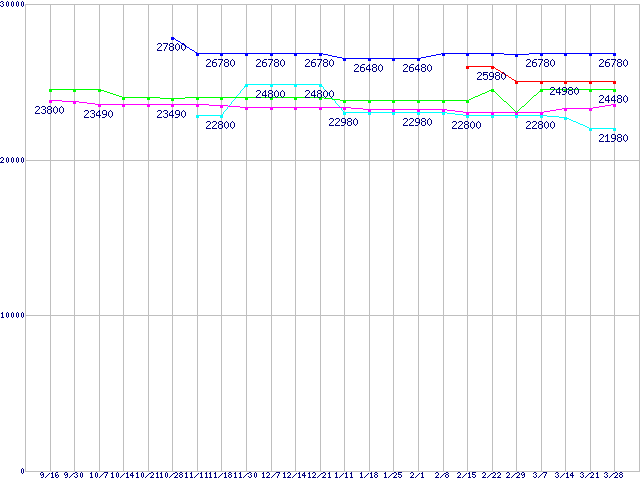 | CPU主要製品(最安値2万円〜3万円未満)の最安値推移 |