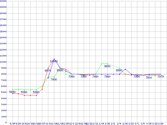 | ※製品名をクリックすると個別のグラフを表示します ※点線部は販売店が確認できなかった、または調査データがないことを示します | |