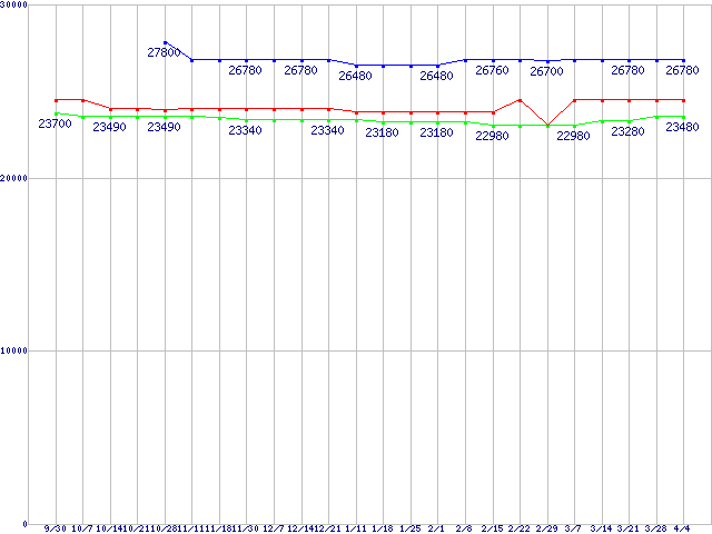 | ※製品名をクリックすると個別のグラフを表示します ※点線部は販売店が確認できなかった、または調査データがないことを示します | |