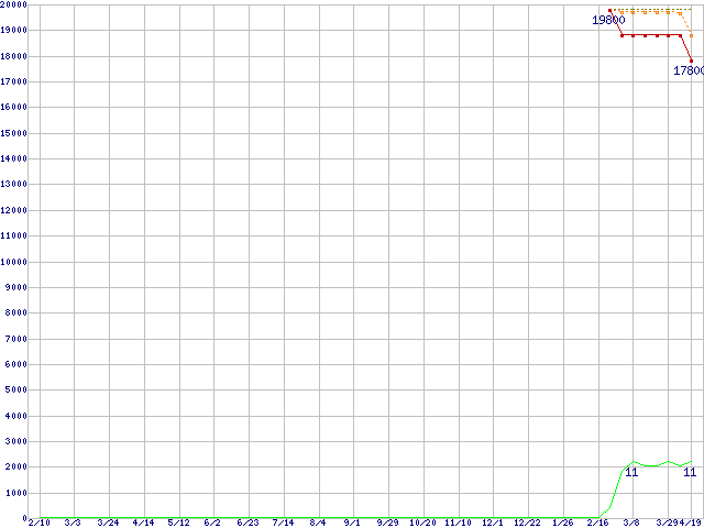 PX-128M3P (128GB,MLC)の価格推移↑前グラフ↓次グラフ(2011年2月10日〜2012年4月19日)※このグラフは過去のデータも税率5%相当に調整した税込み相当額のグラフです。●関連グラフHDD/SSD主要製品の最安値推移HDD/SSD主要製品(最安値1万5千円〜2万円未満)の最安値推移HDD 100〜160GB未満の最安値推移M3 Pro (SSD,6Gbps,2.5インチ,リード540〜535MB/s・ライト450〜350MB/s,7mm厚)の最安値推移●凡例最安値(点線部は販売店未確認または未調査)平均値最高値ショップ数