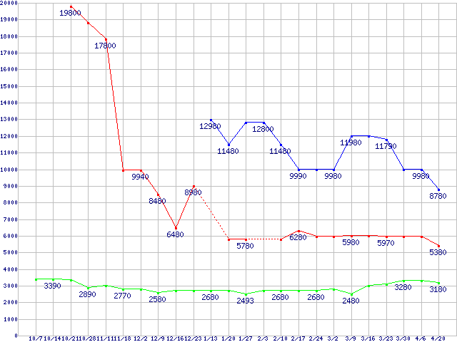 | ※製品名をクリックすると個別のグラフを表示します ※点線部は販売店が確認できなかった、または調査データがないことを示します | |