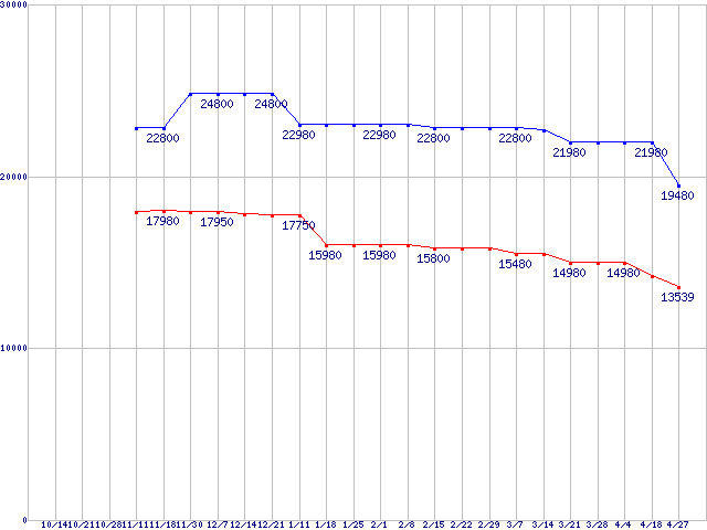 | Socket AM3+ (HyperTransport,8Core)の最安値推移 |