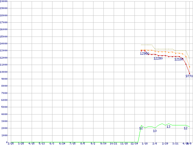 A8-3870K (3.0GHz,TDP 100W)の価格推移↑前グラフ↓次グラフ(2011年2月25日〜2012年5月9日)※このグラフは過去のデータも税率5%相当に調整した税込み相当額のグラフです。●関連グラフCPU主要製品の最安値推移CPU主要製品(最安値1万円未満)の最安値推移AMD系CPUの最安値推移Socket FM1 (Cache 4MB,4Core,Radeon HD 6550D)の最安値推移AMD A8シリーズの最安値推移●凡例最安値(点線部は販売店未確認または未調査)平均値最高値ショップ数