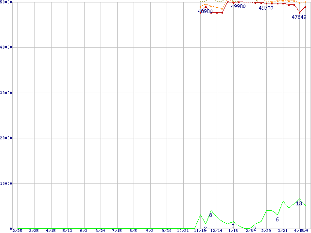 Core i7-3930K (3.20GHz,12MB)の価格推移↑前グラフ↓次グラフ(2011年2月25日〜2012年5月9日)※このグラフは過去のデータも税率5%相当に調整した税込み相当額のグラフです。●関連グラフCPU主要製品の最安値推移CPU主要製品(最安値3万円〜6万円未満)の最安値推移Intel系CPUの最安値推移LGA2011 (Hyper-Threading,TDP 130W)の最安値推移●凡例最安値(点線部は販売店未確認または未調査)平均値最高値ショップ数