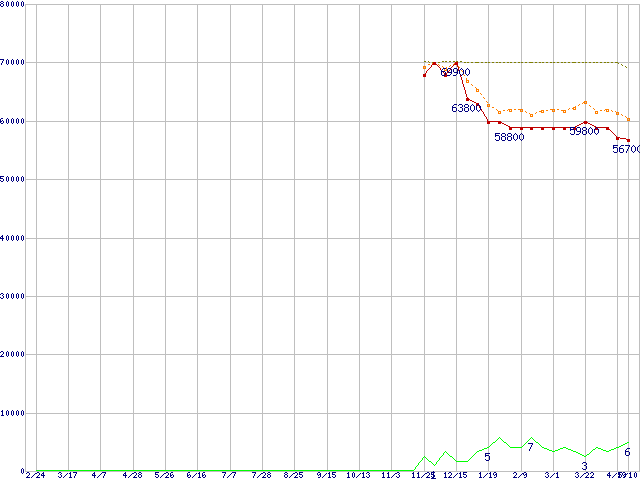 MZ-7PC512 (512GB,MLC)の価格推移↑前グラフ↓次グラフ(2011年2月24日〜2012年5月10日)※このグラフは過去のデータも税率5%相当に調整した税込み相当額のグラフです。●関連グラフHDD/SSD主要製品の最安値推移HDD/SSD主要製品(最安値2万円以上)の最安値推移HDD 500〜600GB未満の最安値推移SSD 830 (SSD,6Gb/s,2.5インチ,リード520MB/s・ライト400〜160MB/s,7mm厚)の最安値推移●凡例最安値(点線部は販売店未確認または未調査)平均値最高値ショップ数