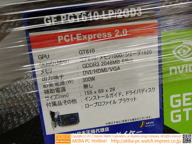 AKIBA PC Hotline!今週見つけた新製品:ビデオカード [拡大画像]GALAXY Microsystems GF PGT630/512D5 GALAXY Microsystems GF PGT620/2GD3 GALAXY Microsystems GF PGT620-LP/1GD3 GALAXY Microsystems GF PGT610-LP/2GD3 GALAXY Microsystems GF GT610-LP/1GD3 FANLESS前の画像←→次の画像