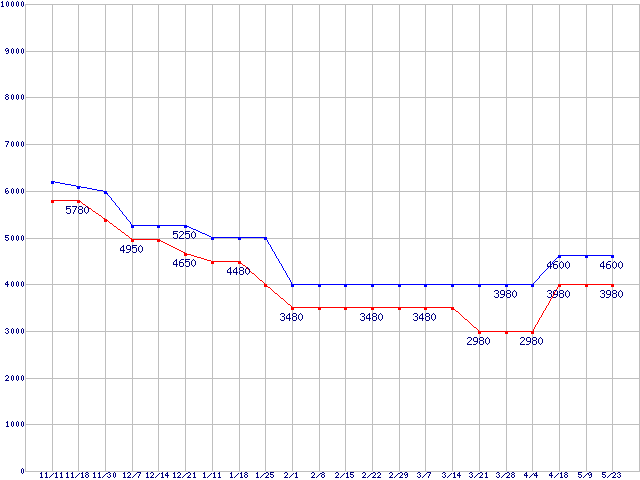 | ※製品名をクリックすると個別のグラフを表示します ※点線部は販売店が確認できなかった、または調査データがないことを示します |