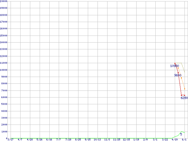 PX-64M3 (64GB,MLC)の価格推移↑前グラフ↓次グラフ(2011年3月17日〜2012年6月1日)※このグラフは過去のデータも税率5%相当に調整した税込み相当額のグラフです。●関連グラフM3 (SSD,6Gbps,2.5インチ,リード520〜510MB/s・ライト360〜175MB/s)の最安値推移●凡例最安値(点線部は販売店未確認または未調査)平均値最高値ショップ数