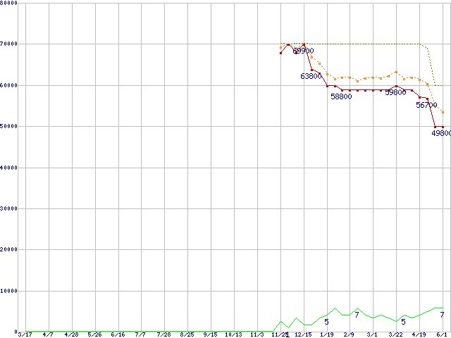 MZ-7PC512 (512GB,MLC)の価格推移↑前グラフ↓次グラフ(2011年3月17日〜2012年6月1日)※このグラフは過去のデータも税率5%相当に調整した税込み相当額のグラフです。●関連グラフSSD 830 (SSD,6Gb/s,2.5インチ,リード520MB/s・ライト400〜160MB/s,7mm厚)の最安値推移●凡例最安値(点線部は販売店未確認または未調査)平均値最高値ショップ数