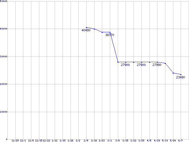 | HDD 200〜250GB未満の最安値推移 |