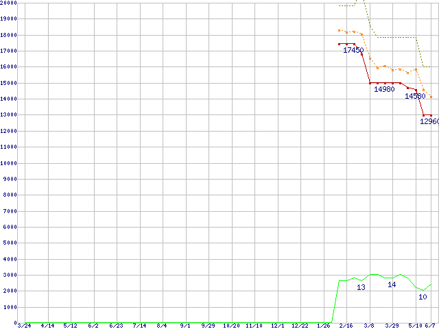 SSD 520 (120GB,MLC)の価格推移↑前グラフ↓次グラフ(2011年3月24日〜2012年6月7日)※このグラフは過去のデータも税率5%相当に調整した税込み相当額のグラフです。●関連グラフHDD/SSD主要製品の最安値推移HDD/SSD主要製品(最安値1万円〜1万5千円未満)の最安値推移HDD 100〜160GB未満の最安値推移SSD 520 (SSD,6Gbps,2.5インチ,リード550MB/s・ライト520〜475MB/s)の最安値推移●凡例最安値(点線部は販売店未確認または未調査)平均値最高値ショップ数