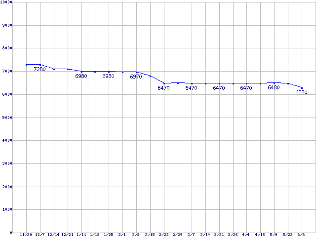 | Socket FM1 (Cache 3MB,3Core,Radeon HD 6530D)の最安値推移 |