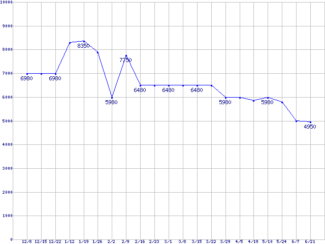 | ※製品名をクリックすると個別のグラフを表示します ※点線部は販売店が確認できなかった、または調査データがないことを示します |