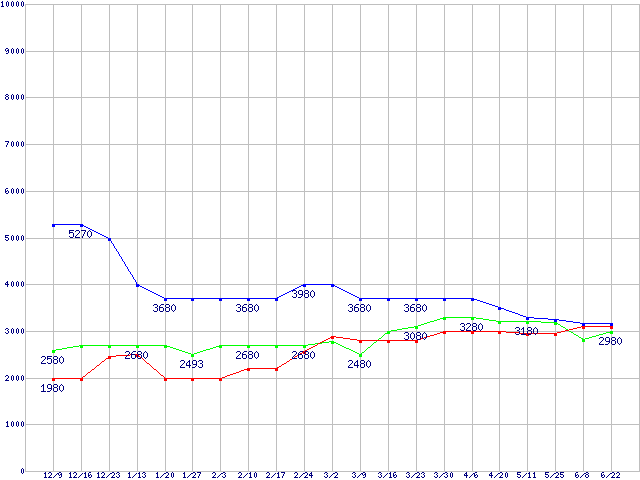 | ※製品名をクリックすると個別のグラフを表示します ※点線部は販売店が確認できなかった、または調査データがないことを示します | |