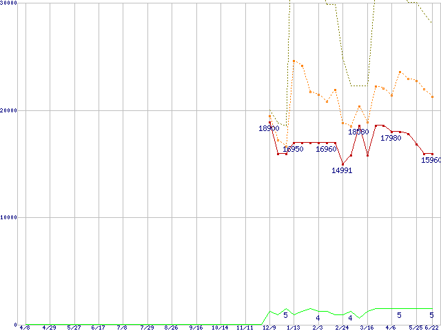 PC3-10600 8GB×4枚組セットの価格推移↑前グラフ↓次グラフ(2011年4月8日〜2012年6月22日)※このグラフは過去のデータも税率5%相当に調整した税込み相当額のグラフです。●関連グラフメモリ主要製品の最安値推移メモリ主要製品(最安値1万円以上)の最安値推移PC3-10600(DDR3-1333) DDR3 SDRAM DIMMの最安値推移●凡例最安値(点線部は販売店未確認または未調査)平均値最高値ショップ数