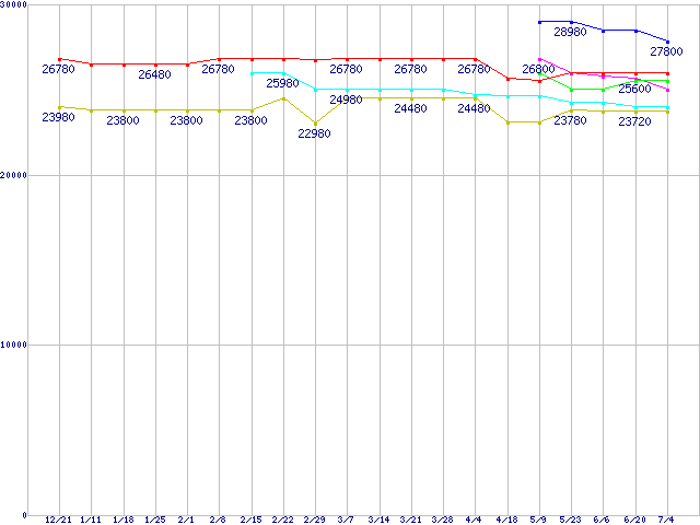 | CPU主要製品(最安値2万円〜3万円未満)の最安値推移 |
