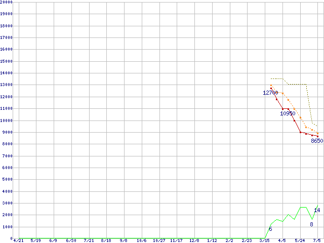 0S03509 (1TB,8MB)の価格推移↑前グラフ↓次グラフ(2011年4月21日〜2012年7月5日)※このグラフは過去のデータも税率5%相当に調整した税込み相当額のグラフです。●関連グラフHDD/SSD主要製品の最安値推移HDD/SSD主要製品(最安値1万円未満)の最安値推移HDD 1TB〜1.5TB未満の最安値推移TRAVELSTAR (5400rpm,3Gb/s,2.5インチ)の最安値推移●凡例最安値(点線部は販売店未確認または未調査)平均値最高値ショップ数