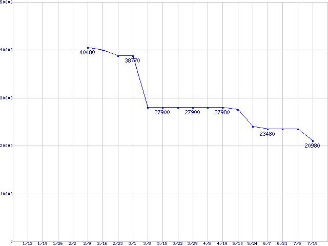 | HDD 200〜250GB未満の最安値推移 |