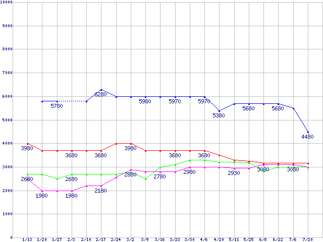 | ※製品名をクリックすると個別のグラフを表示します ※点線部は販売店が確認できなかった、または調査データがないことを示します | |