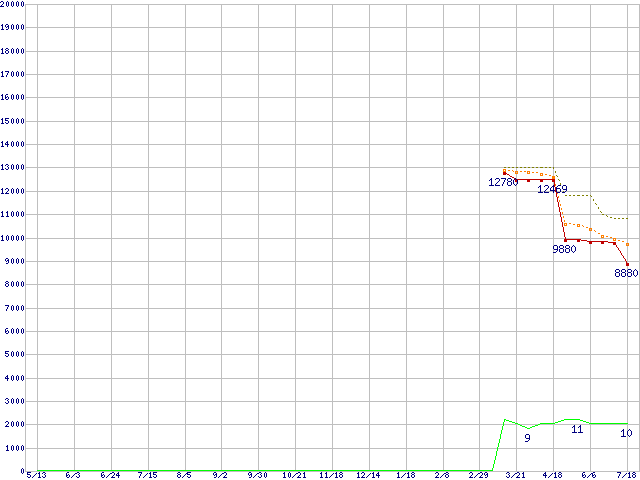 A8-3820 (2.5GHz,TDP 65W)の価格推移↑前グラフ↓次グラフ(2011年5月13日〜2012年7月18日)※このグラフは過去のデータも税率5%相当に調整した税込み相当額のグラフです。●関連グラフCPU主要製品の最安値推移CPU主要製品(最安値1万円未満)の最安値推移AMD系CPUの最安値推移Socket FM1 (Cache 4MB,4Core,Radeon HD 6550D)の最安値推移●凡例最安値(点線部は販売店未確認または未調査)平均値最高値ショップ数