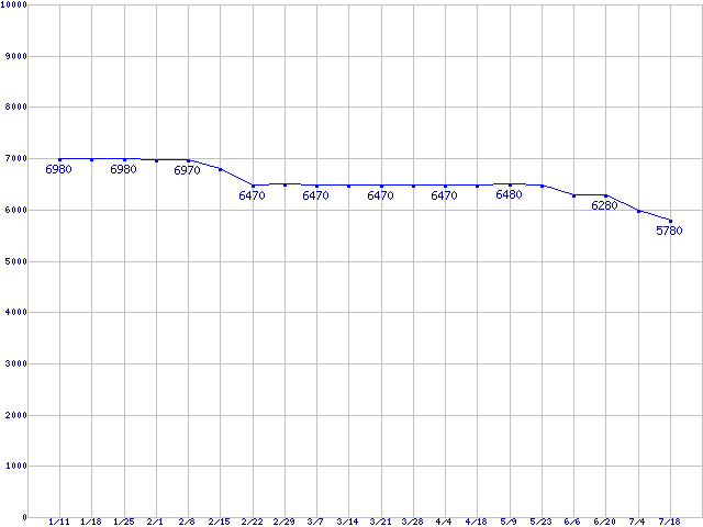 | Socket FM1 (Cache 3MB,3Core,Radeon HD 6530D)の最安値推移 |
