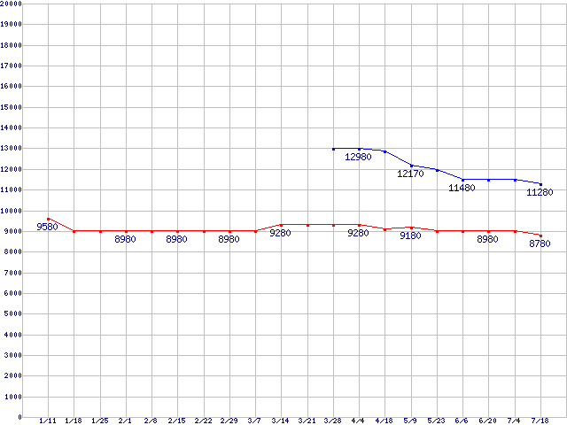 | ※製品名をクリックすると個別のグラフを表示します ※点線部は販売店が確認できなかった、または調査データがないことを示します |