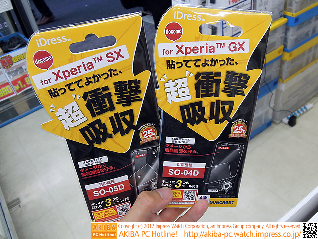 ![]() | AKIBA PC Hotline! 今週見つけた新製品:モバイルアクセサリー [拡大画像]サンクレスト 衝撃自己吸収フィルムフリーサイズ 4.8インチ(48SP-ASF) サンクレスト 衝撃自己吸収フィルムフリーサイズ 4.3インチ(43SP-ASF) サンクレスト 衝撃自己吸収フィルム for Xperia SX(SO05D-ASF)/Xperia GX(SO04D-ASF) |