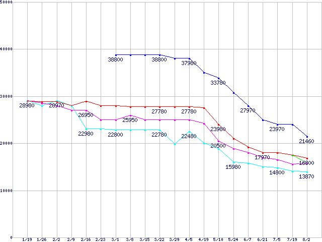 | ※製品名をクリックすると個別のグラフを表示します ※点線部は販売店が確認できなかった、または調査データがないことを示します | |